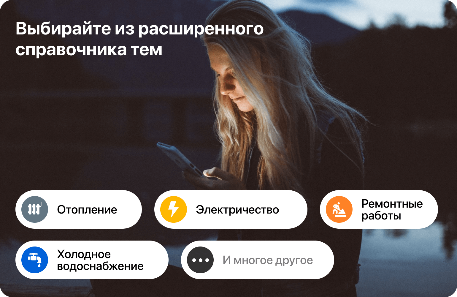 Вы можете сообщить о проблемах, с которыми столкнулись на улицах своего города, автодорогах, в парках, во дворах или в своём доме. Категории сообщений затрагивают различные сферы и отрасли, позволяя большинство вопросов решить онлайн.